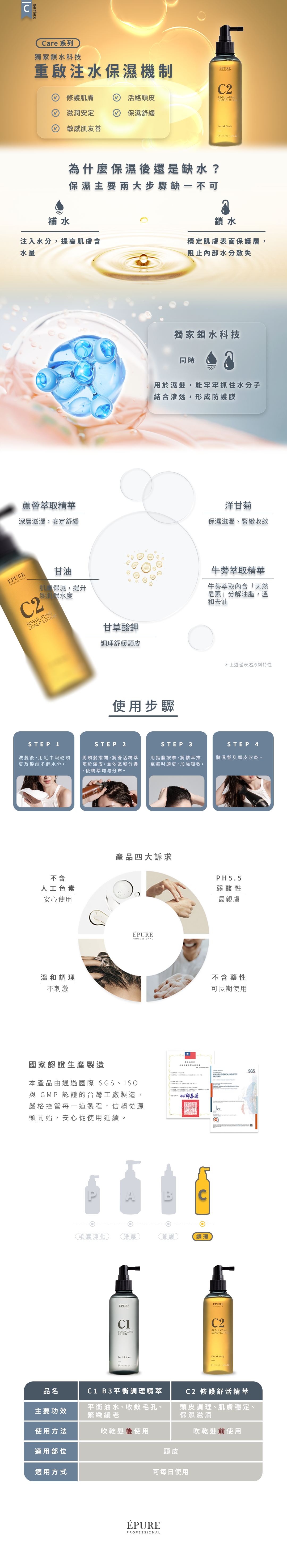 ◆獨特鎖⽔保濕技術,用於濕髮時,強⼒鎖住⽔分子,滋養活化頭⽪,提升防護⼒